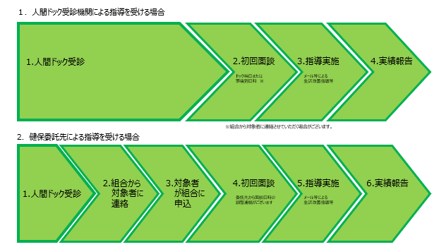 なお、特定保健指導につきましては、外部の委託先が企画・運営しているプログラムがあり、委託先が提供するプログラムをご希望の場合、申込~指導完了までの間に委託先から直接連絡がある場合があります。